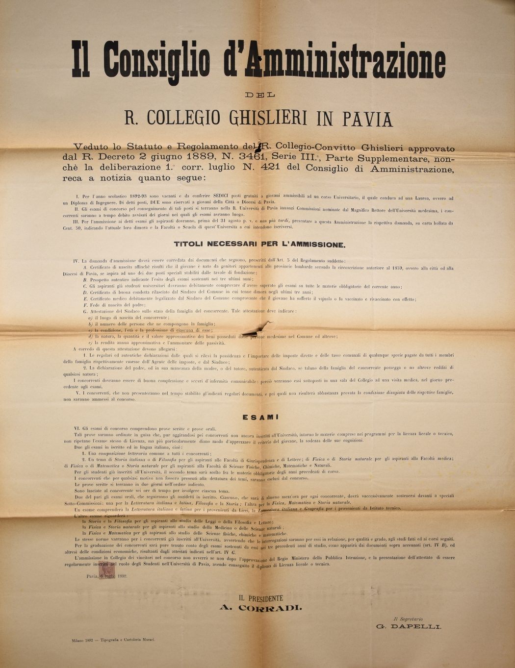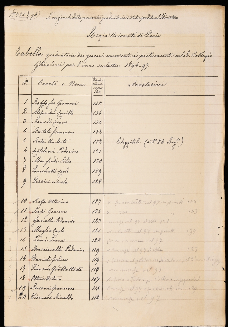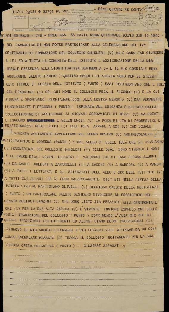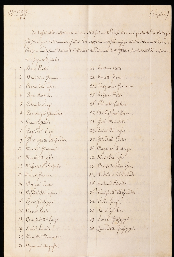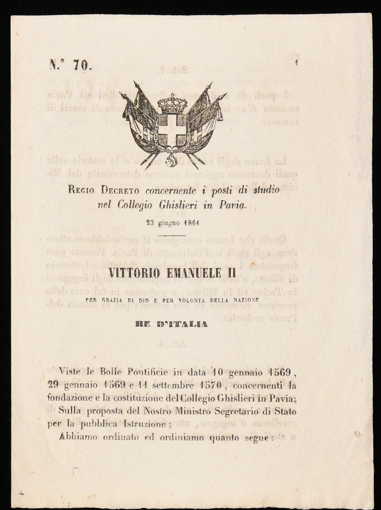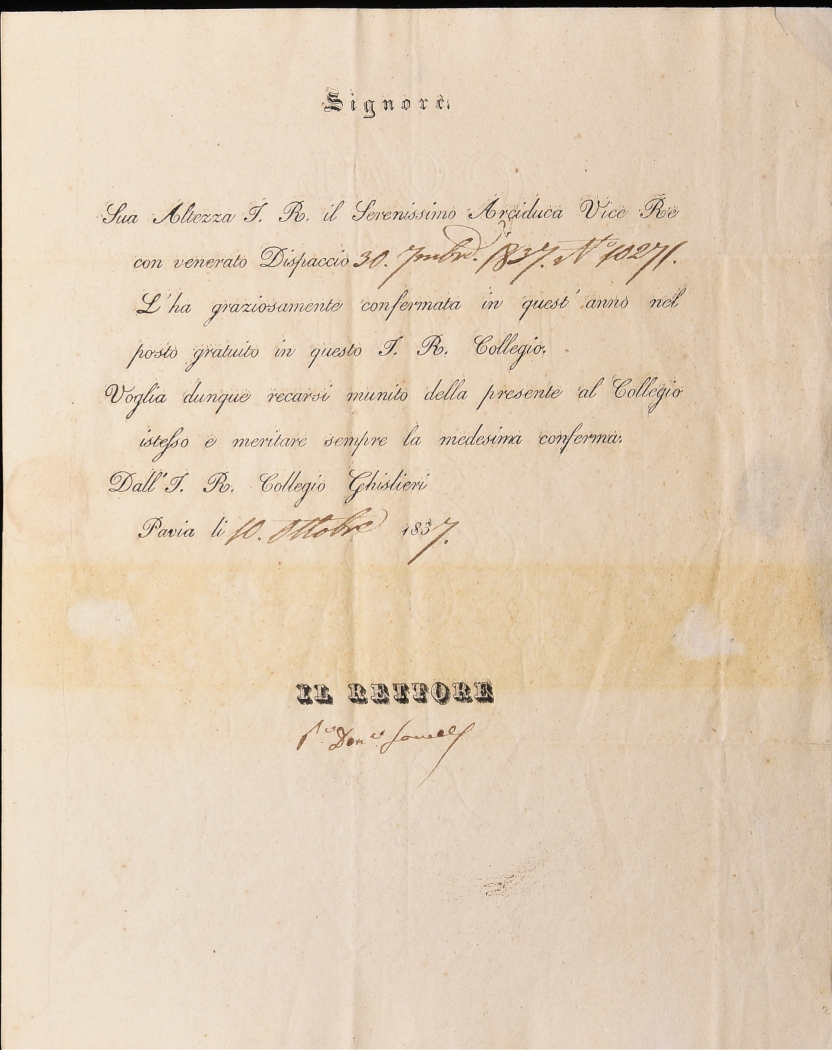 Accesso all’Archivio: solo su appuntamento, contattando il Rettorato del Collegio (rettorato@ghislieri.it; +39 0382 3786226).