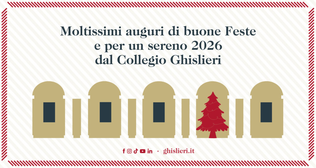 In occasione del periodo natalizio il Collegio Ghislieri chiuderà alle ore 12 di lunedì 22 dicembre sino a martedì 6 gennaio. Riaprirà alle ore 7 di mercoledì 7 gennaio 2026. In questo periodo verrrà sospeso anche il servizio di portineria.