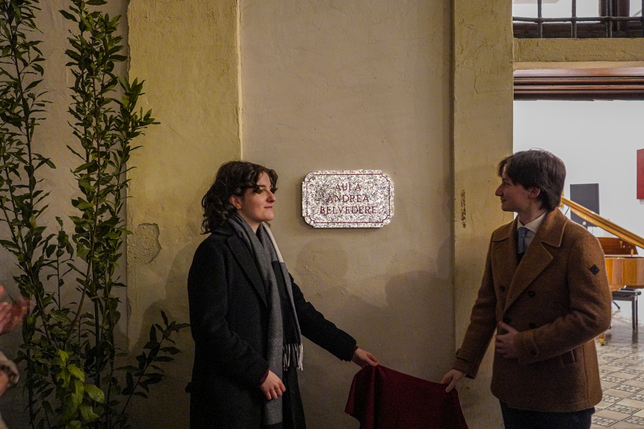 Al nome di Andrea Belvedere va anche legato il progetto GhislieriMusica: il suo sostegno ha permesso al Coro e all’Orchestra del Ghislieri di trasformarsi in una realtà eminente nel panorama internazionale della musica antica. Nel ricordo di questa passione al suo nome è stata intitolata l’Aula musica che si affaccia sul Quadriportico del Collegio.
