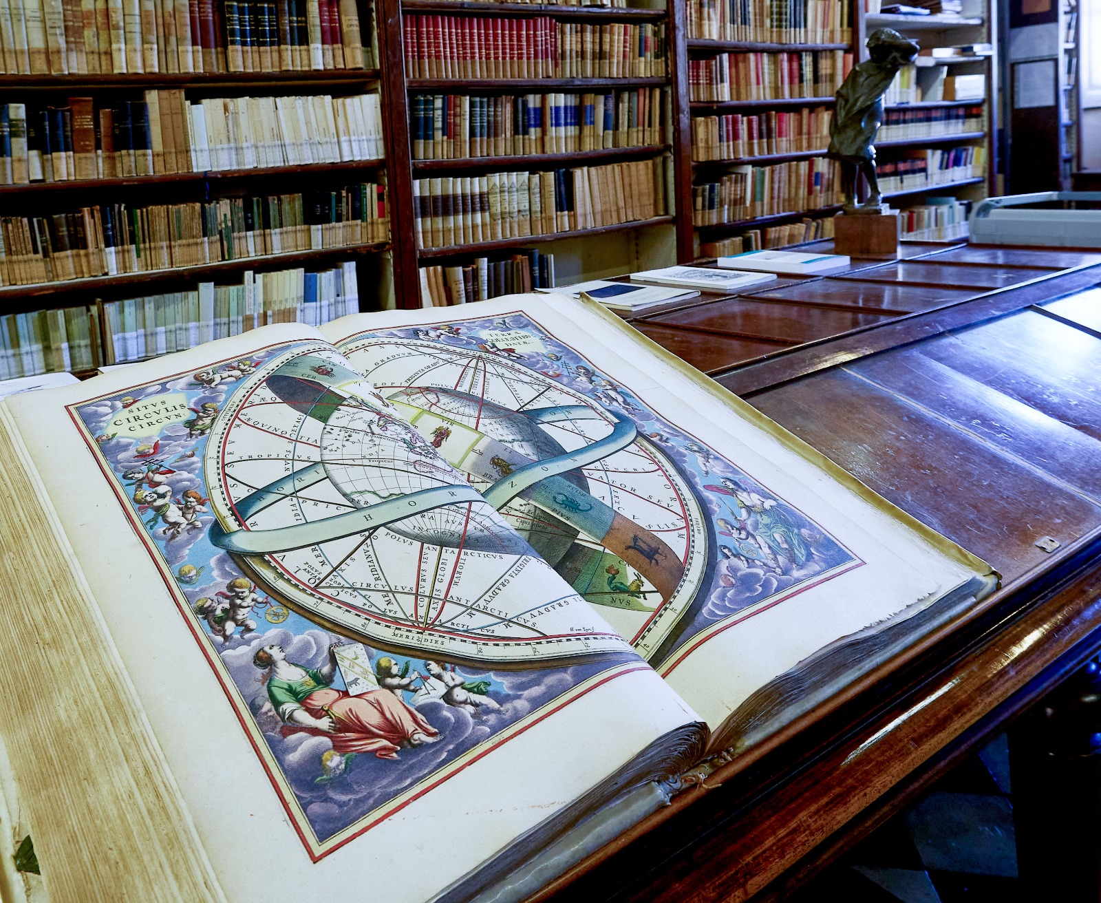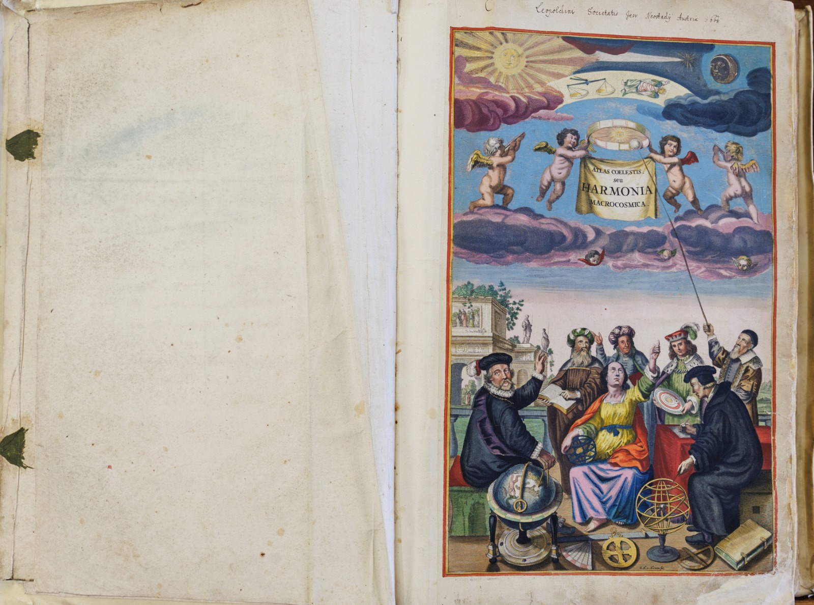 L’atlante celeste Harmonia Macrocosmica seu atlas universalis et novus, totius universi creati cosmographiam generalem et novam exhibens del cartografo Andreas Cellarius è la più spettacolare opera astronomica del XVII secolo. Intriso di sapere astronomico, matematico, storico, filosofico e mitologico, Il volume presenta una serie di straordinarie mappe che illustrano, con dovizia di particolari, il sistema solare e le costellazioni note all’epoca accanto a descrizioni matematiche e sapienti illustrazioni di tutti i corpi astronomici indagati. Voluta dallo stampatore fiammingo Johannes Janssonius a completamento dell’Atlas Novus absolutissimus progettato dal cartografo Gerhard Mercator, l’editio princeps dell’Harmonia (1660) si aggiunge alla consolidata tradizione che l’allora Repubblica delle Province Unite poteva vantare nel campo della produzione di globi e mappe dettagliate.